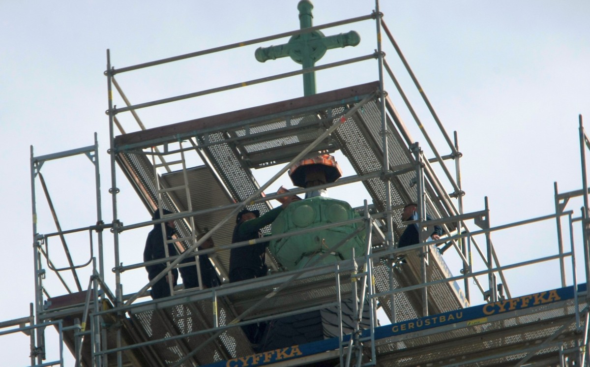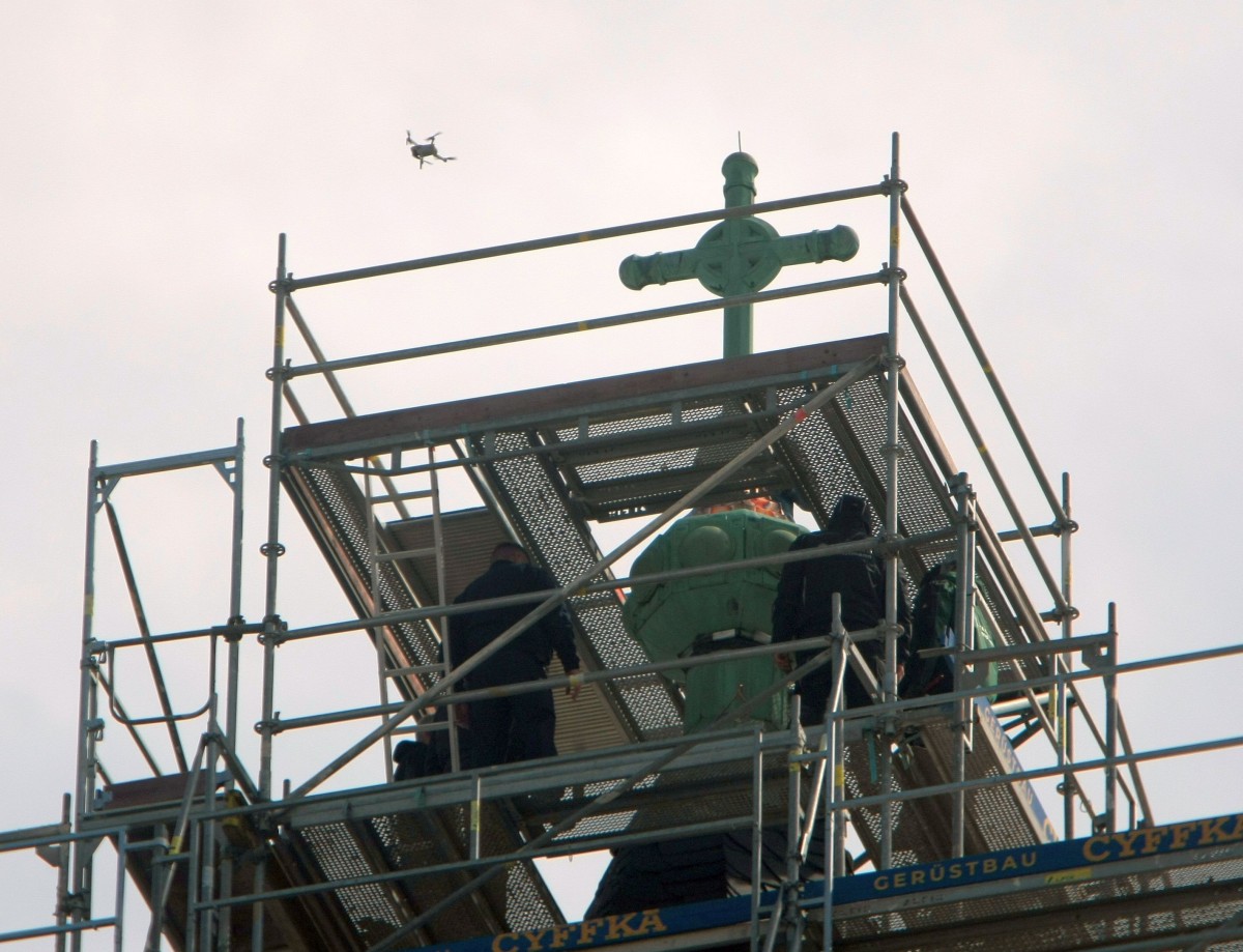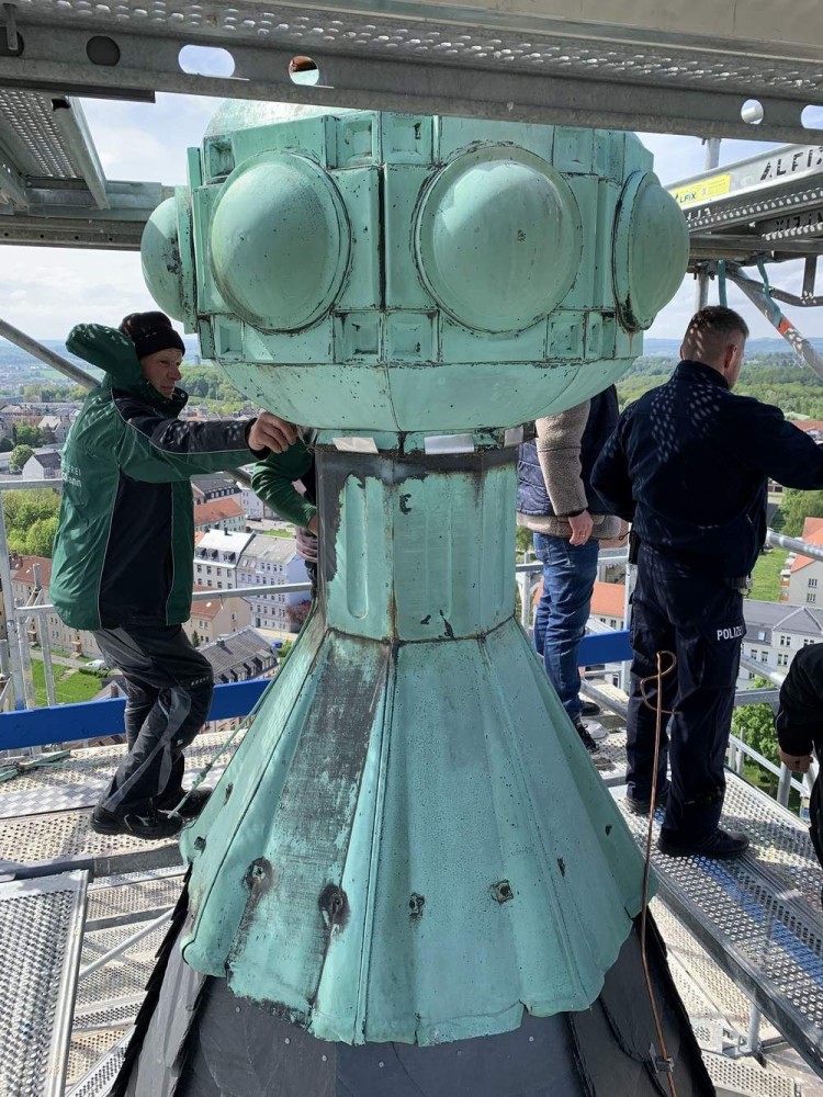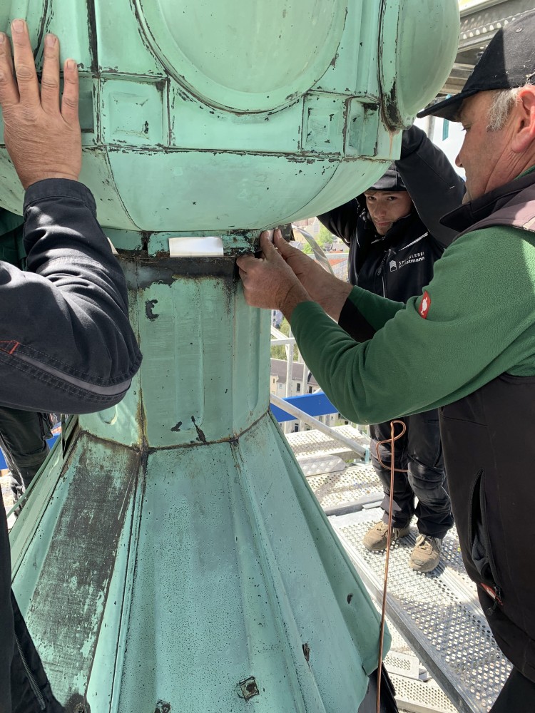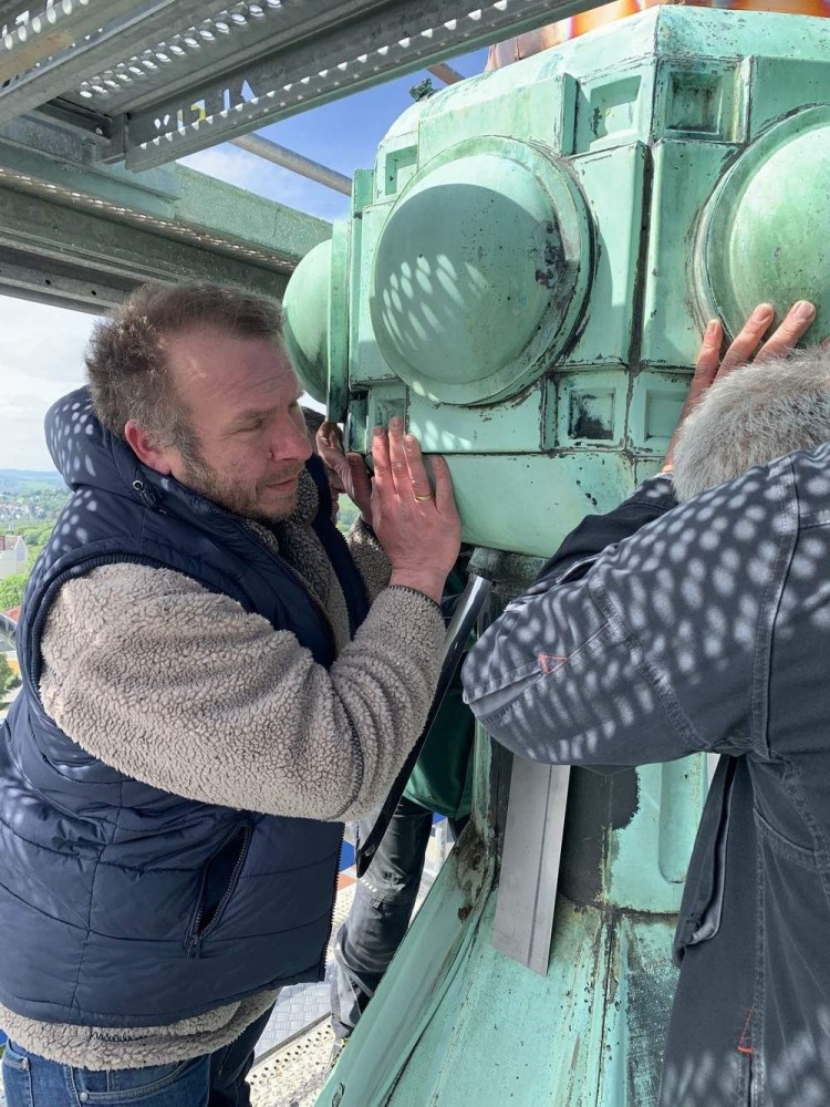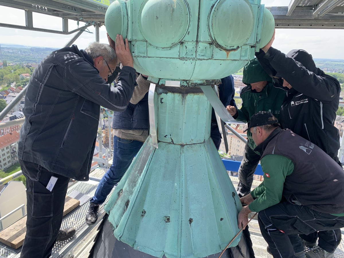 Bildergalerie vom Einbau der Zeitkapsel in die Turmspitze unserer Markuskirche am 05. Mai 2025