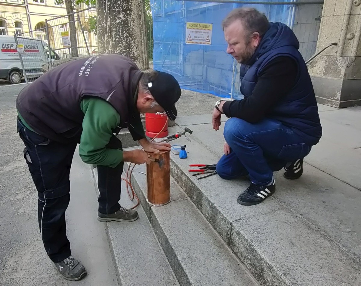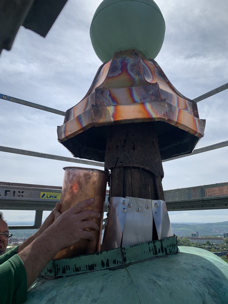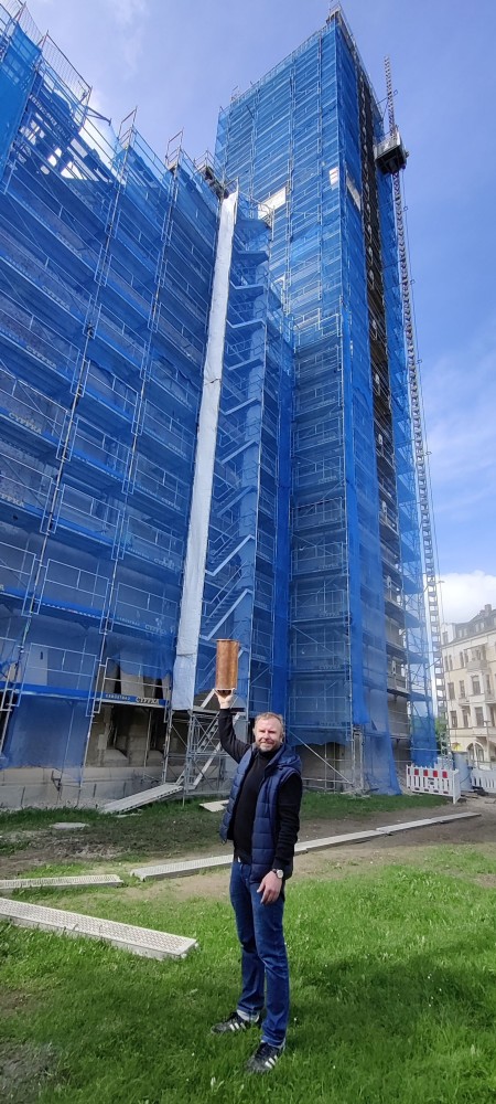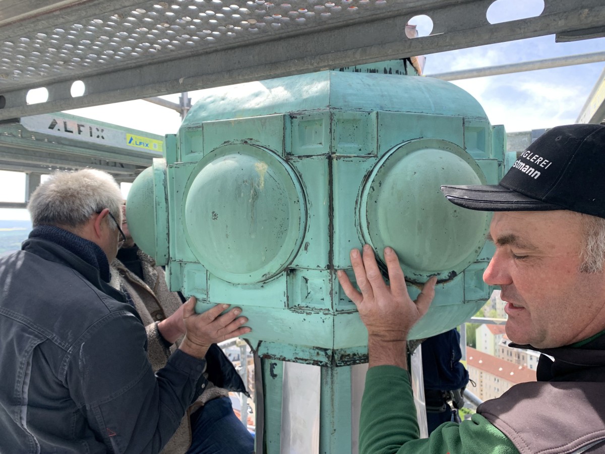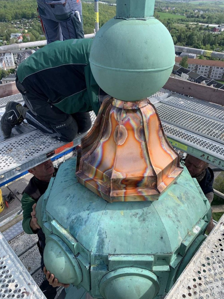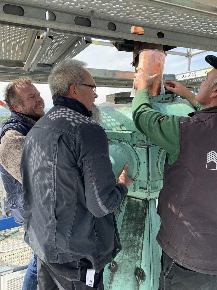 Bildergalerie vom Einbau der Zeitkapsel in die Turmspitze unserer Markuskirche am 05. Mai 2025