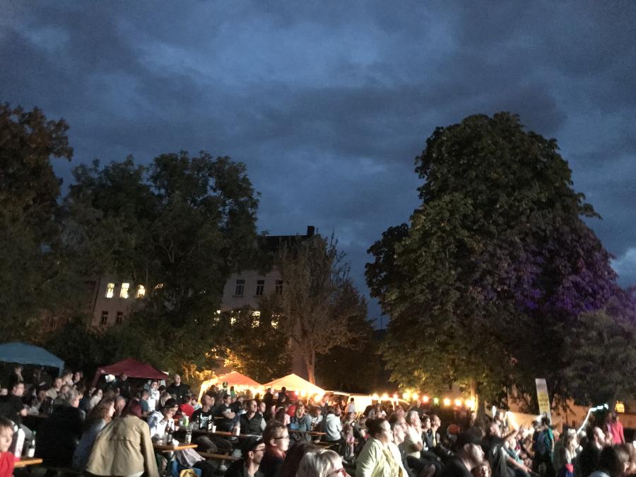 Um 18:00 wurde dann auf der tollen großen Leinwand der Kinderfilm "Die Schule der magischen Tiere" gezeigt. Danach gab es mit dem Fanfarenzug aus Greiz einen Lampionumzug. Für die Großen wurde im Anschluß noch der Tanzfilm "Fly" gezeigt.